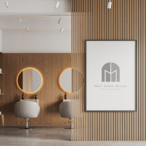 Hair Salon MIirrorのロゴデザイン 前提条件 デザインの説明 シンプルながらも印象的なデザインで、真ん中で色が分かれることで鏡に映った自分と新しい自分を表現しており、お客様が自己の変化を楽しみながら、新し