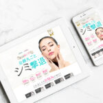 エステサロンホームページのファーストビュー画像 前提条件 デザインの説明 背景をホワイト系にする事で、タイトル文字のカラーが引き立つようにいたしました。 テーマカラーのティファニーブルーはメインタイトルに使用し、 メイン