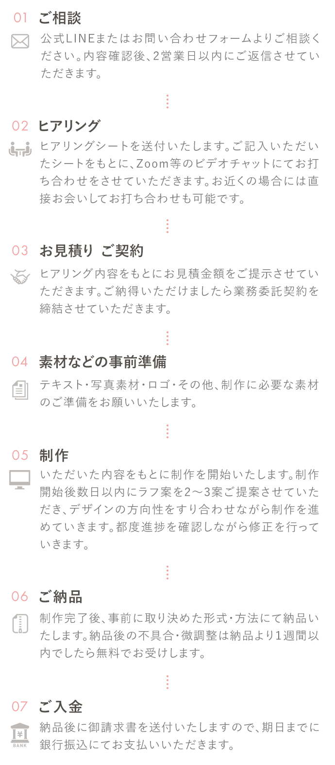 - 納品後1週間以内の軽微な修正
